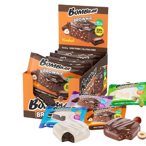 Белковая смесь (концентрат сывороточного белка, концентрат молочного белка, гидролизованный коллаген (говяжий)), водорастворимые волокна кукурузы, молочный шоколад (водорастворимые волокна кукурузы, какао масло, какао тертое, молоко сухое обезжиренное, эмульгатор(соевый лецитин), ароматизаторы натуральные, подсластитель (стевиолгликозиды (экстракт стевии))), темный шоколад (какао тертое, какао масло, водорастворимые волокна кукурузы, олигофруктоза (пищевые волокна), инулин (пищевые волокна), эмульгатор (соевый лецитин)), вода, какао порошок алкализованный, кокосовое масло, сухое обезжиренное молоко, фундук, продукты яичные (меланж яичный), агент влагоудерживающий (глицерин), соль, ароматизаторы натуральные, регуляторы кислотности (гидрокарбонат натрия(сода пищевая), лимонная кислота), эмульгатор (соевый лецитин), антиокислитель (аскорбиновая кислота), подсластитель (сукралоза), консервант (сорбат калия). Может содержать незначительное количество арахиса, миндаля, кешью, фисташки. Содержит подсластитель. Содержит сахара природного (естественного) происхождения.
