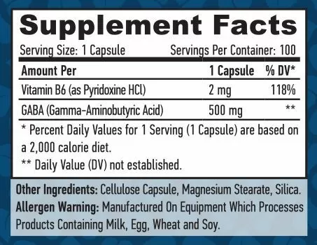 с содержанием 100% ГАМК + B-6 / 500 мг, что может помочь вам поддерживать сильное общее здоровье.